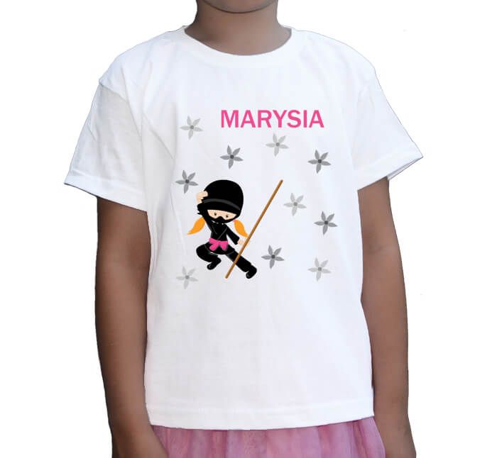 Koszulka Ninja z imieniem dziewczynki. Jeśli podoba Ci się ten wzór, ale masz chłopca, zamiast dziwczynki może być chłopiec ninja