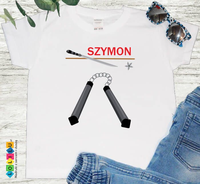 Jednak istnieją trenerzy, którzy kochają tego typu sport i prowadzą różne zajęcia sprawnościowe dla dzieci. Może to być judo, ju-jitsu, aikido, kyokushin, taekwoondo lub inne. Dziecko na pewno ucieszy się z koszulki, mającej elementy odnoszące się do walki. Tutaj jest to nunczko, miecz oraz gwiazdka, jaką używali ninja. Wszystkie te bronie znajdziesz w bajce Lego Ninjago.