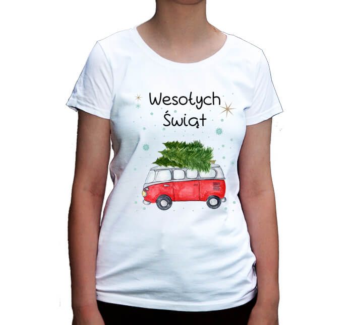 Koszulka świąteczna damska choinka na busie