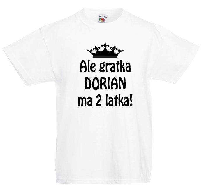 Koszulka Ale gratka ma 2 latka z dowolnym imieniem dziecka.