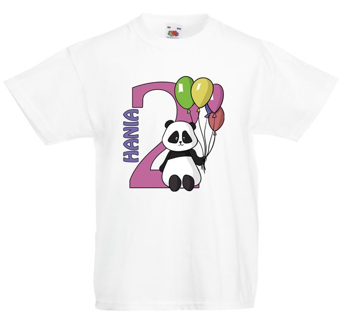 Koszulka na 2 latka z imieniem i pandą z okazji drugich urodzin dziecka.