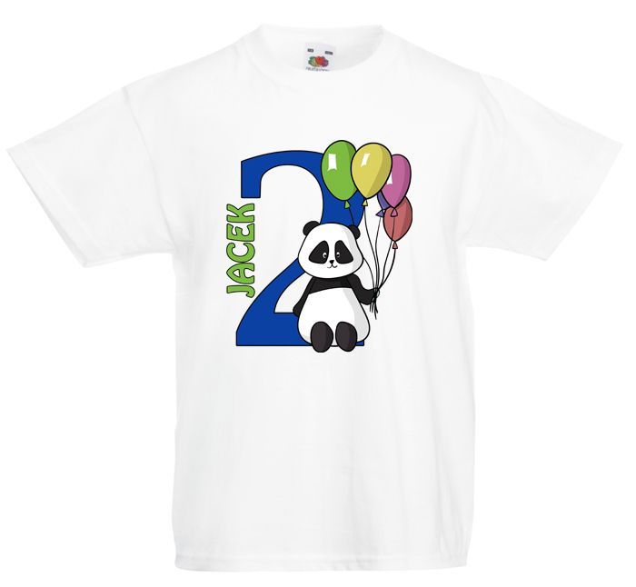 Koszulka na 2 latka z imieniem i pandą z okazji drugich urodzin dziecka.