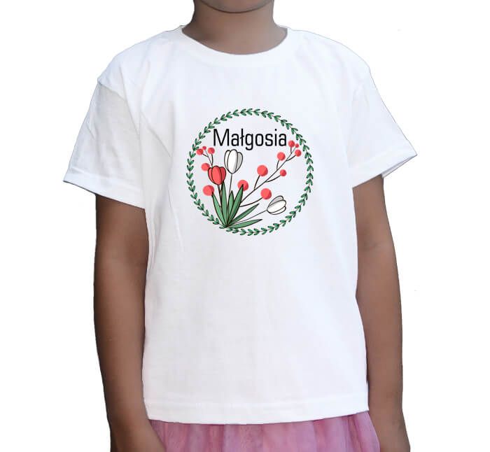 Koszulka dziecięca wiosenne kwiaty z imieniem. Polne kwiaty są piękne.