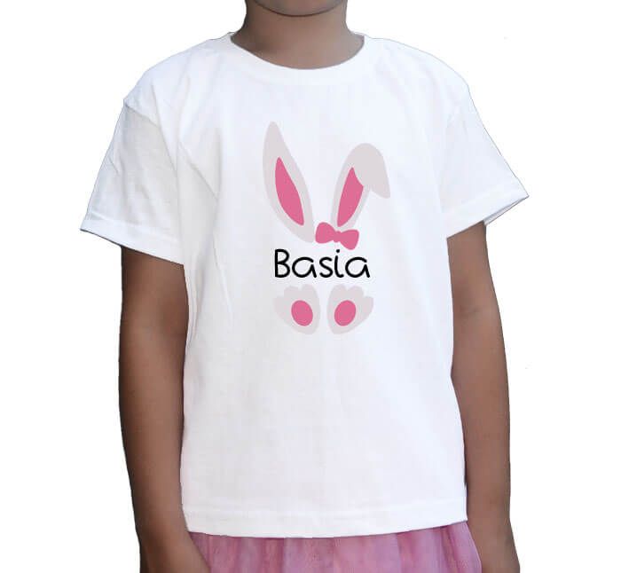 Koszulka wielkanocna z zającem dla dziewczynki z imieniem