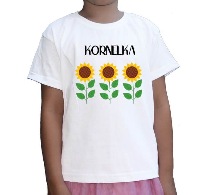 Koszulka Słoneczniki z imieniem. Koszulka drukowana na zamówienie. Podaj imię w zakładce "Personalizuj". Jeśli marzy Ci się inny kolor koszulki, napisz to.