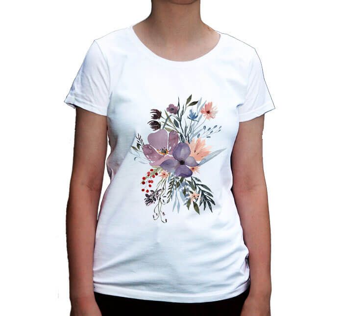 Koszulka z przepięknym motywem malowanych kwiatów. Delikatne, kobiece, piękne. Koszulka idealna na prezent.