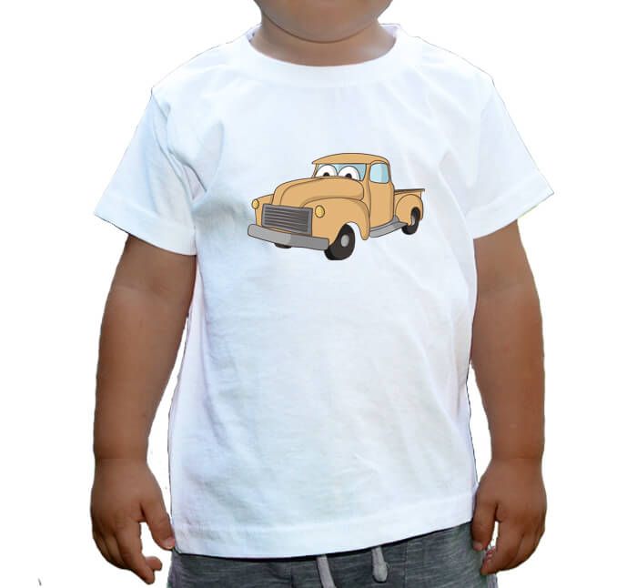 Koszulka dziecięca Stary pickup serii Cars przedstawia model samochodu pickap truck z paką do przewozu przeróżnych narzędzi. Samochód jest koloru brązowego i jako animowana postać wydaje się być zasadniczy i twardy.