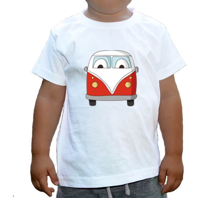 Koszulka dziecięca Czerwony Busik z serii Cars przedstawia czerwono-białe auto marki Volswagen. Autko jak pozostałe z serii jest z animowane.