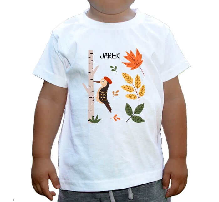 Koszulka dzięcioł z imieniem. Koszulka drukowana na zamówienie. Podaj imię w zakładce "Personalizuj". Potrzebujesz większego rozmiaru, lub damską czy męską? Kup i napisz to w polu przeznaczonym na komentarz. Koszulka może również być bez imienia.