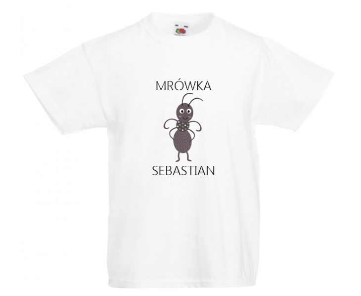 Koszulka z imieniem dla dziecka z mrówką. Wydrukowane będzie imię, które Państwo podadzą. Mrówki to bardzo ciekawe owady. Z fascynacją i zaciekawieniem można je oglądać godzinami. Te pracowite owady są przykładem zespołowej pracy. Choć nikt nie lubi, gdy po nim chodzi choć jedna mrówka, to obserwować je lubimy. Zazwyczaj też człowiek nie robi im krzywdy, a wszystkie mrowiska omija z daleka.
