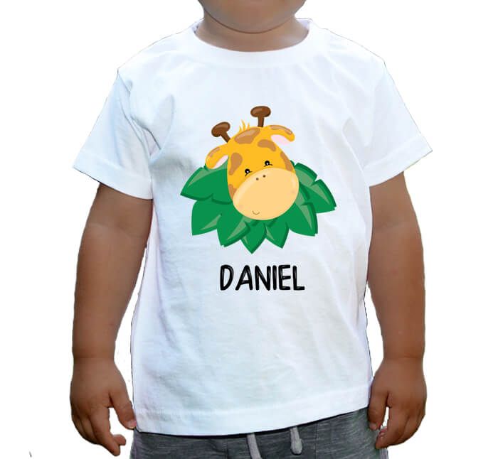 Koszulka dziecięca Żyrafa z imieniem Twojego dziecka. Jest doskonała na prezent, na wf lub do przedszkola. Ale jeśli wzór jest w porządku, tylko imię jest przeszkodą, to napisz w wiadomości w koszyku taką adnotację.