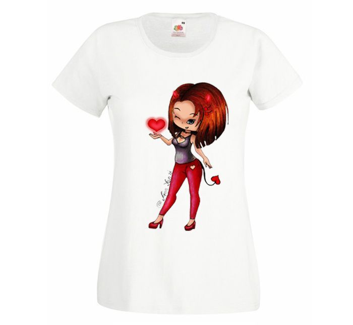 Koszulka damska Diablica z unikatowym nadrukiem ponętnej Anki. To nie zwykła Ania, to diablica z rogami i ogonem, która kradnie serca. Niezwykła istota, za którą oglądają się wszyscy.