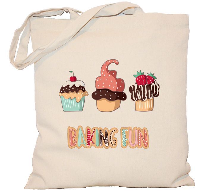 Torba dla fanów wypieków z kolorowymi babeczkami.