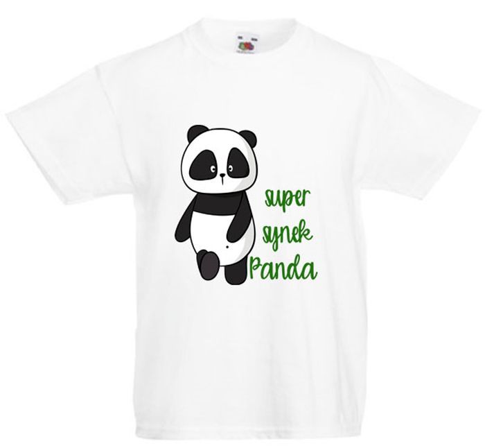 Koszulka dziecięca super synek Panda. Pandy są bardzo lubiane przez dzieci i dorosłych. Chłopiec przemierza świat.