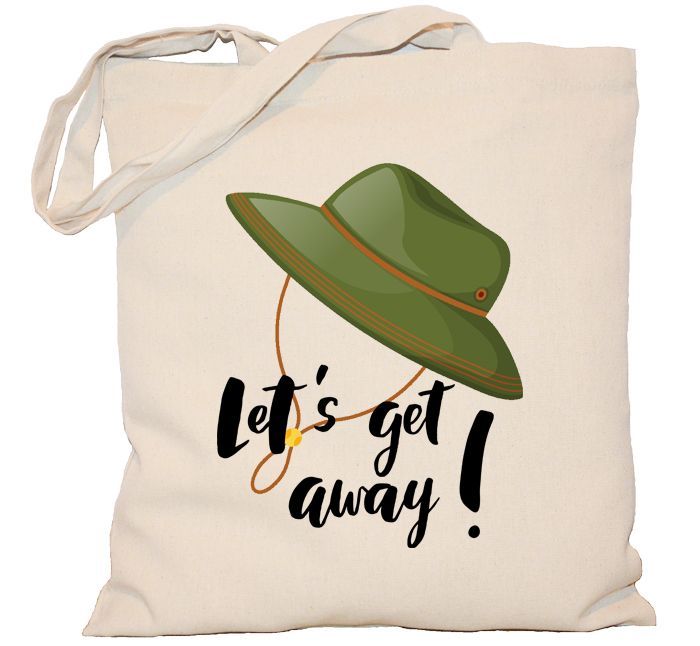 Torba podróżnika z kapeluszem i napisem Let's get away!