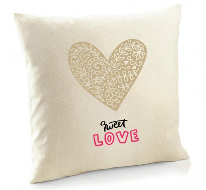 Poszewka sweet love z ażurowym serduszkiem i podpisem.