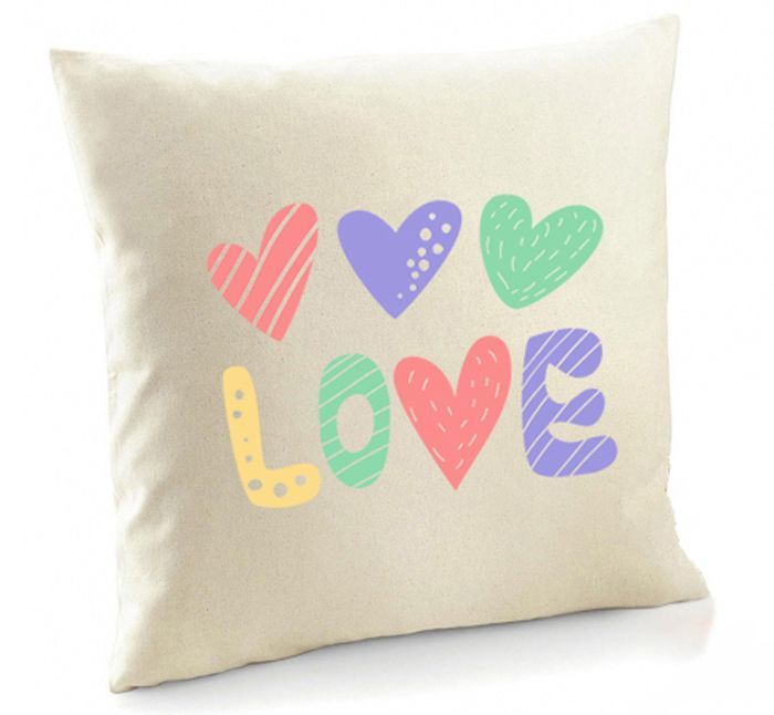 Poszewka Kolorowe Love z kolorowymi sercami.