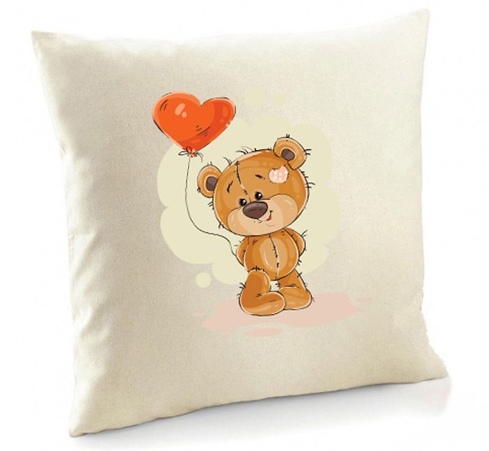 Poszewka Nieśmiały Miś z uroczym misiem trzymającym walentynkowy balonik.