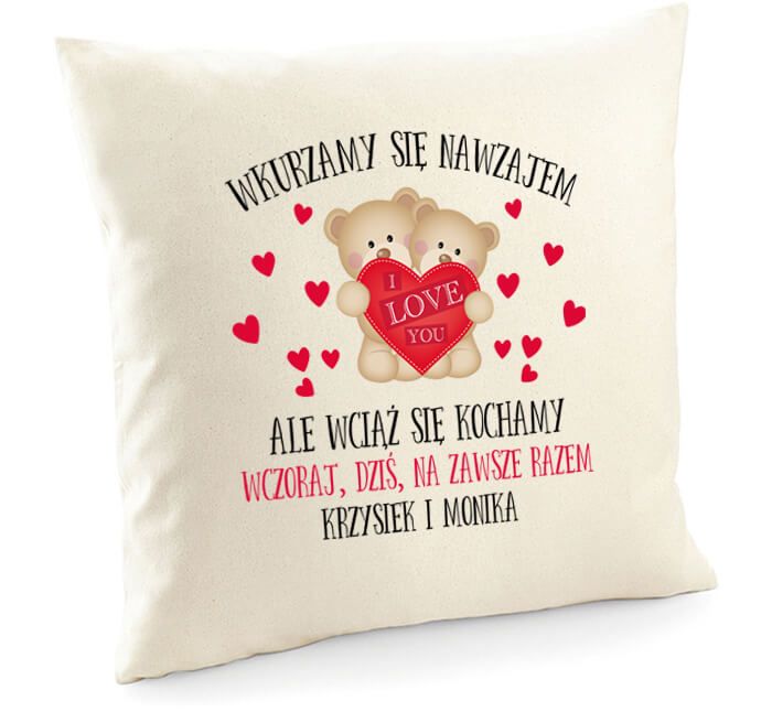 Poduszka z misiami Wkurzamy się nawzajem, ale wciąż się kochamy. Poduszka spersonalizowana imionami pary. Podaj właściwe dane.