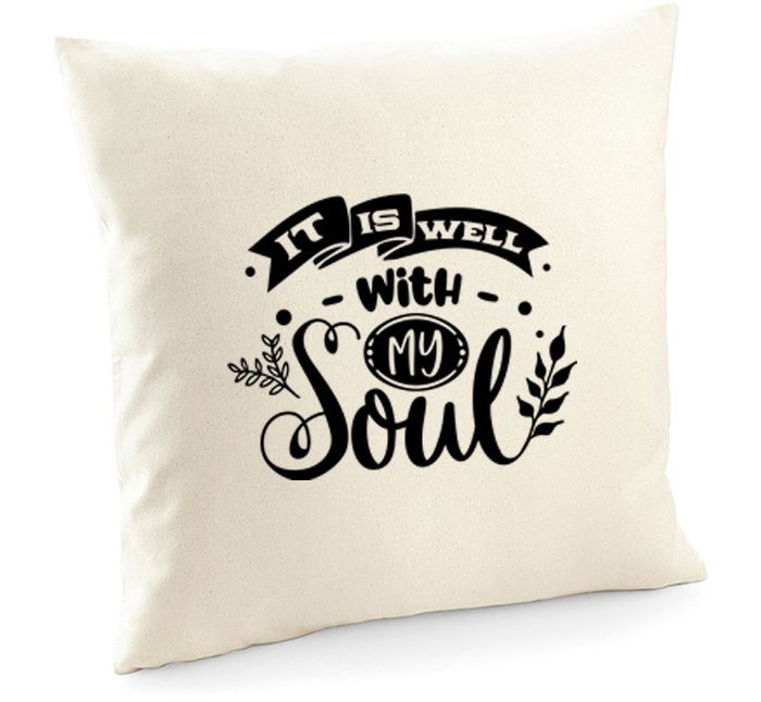 It is well with my Soul taki napis widnieje na tej poszewce. Szukasz takiego prezentu. Chcesz zachować w pamięci jakieś chwile? Poszewka z czarnym napisem dobrze się prezentuje w każdym pomieszczeniu.