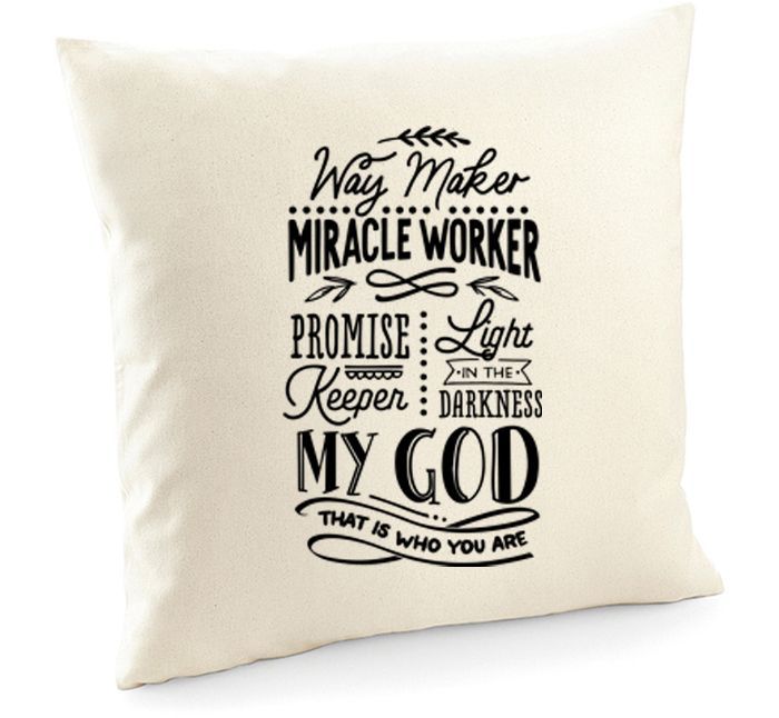 Way Maker Miracle Worker taki napis widnieje na tej poszewce. Szukasz takiego prezentu. Chcesz zachować w pamięci jakieś chwile? Poszewka z czarnym napisem dobrze się prezentuje w każdym pomieszczeniu.