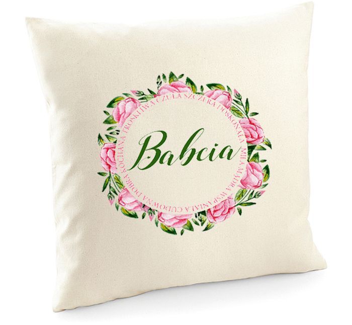 Poszewka Babcia ma wypisane przykładowe przymiotniki idealnej babci. W oczach wnucząt babcie są fajne. Babcia jest bowiem troskliwa, czuła, szczera, doskonała, miła, mądra, wspaniała, cudowna, dobra, kochająca i ..., na pewno wyjątkowa i jedyna w swoim rodzaju.