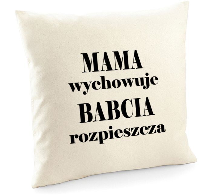 Poszewka Mama wychowuje Babcia rozpieszcza.