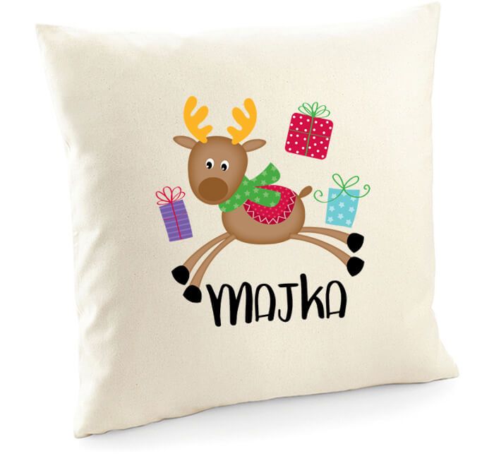 Poduszka świąteczna z reniferem z imieniem, poszewka