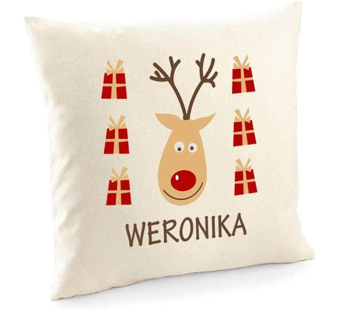 Poduszka z reniferem z imieniem, poszewka świąteczna