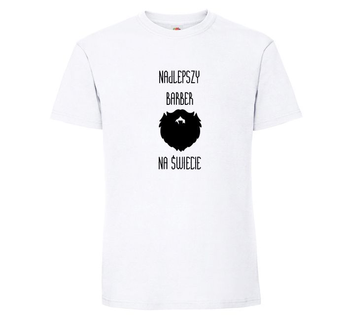 Koszulka z nadrukiem spersonalizowana napisem dla Najlepszego Barbera na świecie. To obecnie modny zawód, w którym nie obowiązuje oficjalny strój. Dlatego taka koszulka może pełnić uniformu do pracy albo być użytowana w czasie wolnym. Zawsze wygląda dobrze.