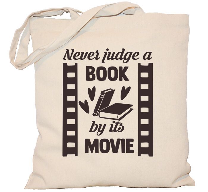 Torba z napisem never judge a book by its movie