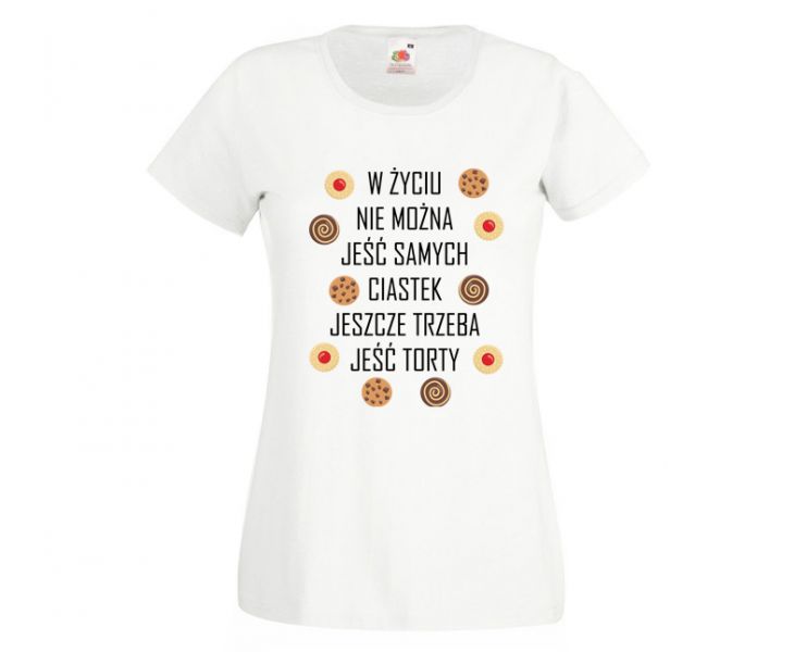 Koszulka damska cukiernika W życiu nie można jeść samych ciastek trzeba jeszcze jeść torty.