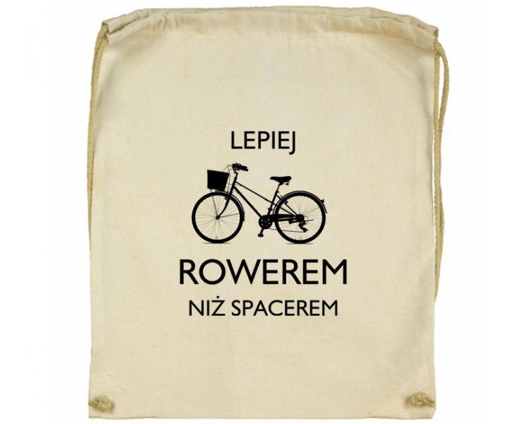Lepiej rowerem niż spacerem - taki nadruk znajdzie się na workoplecaku. Wygodny workoplecak jest zakładany na plecy. To bardzo ważne, aby podczas jazdy nic nie wisiało na kierownicy i przeszkadzało. Bawełna sprawia, że plecy nadmiernie się nie pocą nawet w upalne dni. Rowerem więcej jeździ się latem, więc higroskopijne właściwości są bardzo cenne.