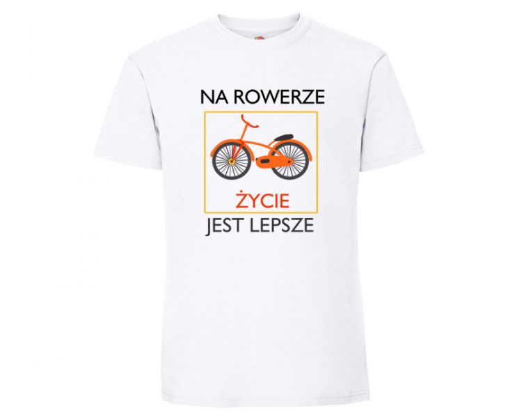 Koszulka Na rowerze życie jest lepsze. Kto kocha rower ten temu nie zaprzeczy. Rower jest nie tylko środkiem transportu, ale również sprzętem generującym zabawę i ubaw. Ci co jeżdzą na przejażdżki rekreacyjne robią to przecież głównie dla przyjemności.