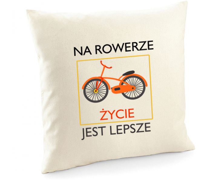 Poszewka Na rowerze życie jest lepsze. Dekoracyjna poszewka doskonale nadaje się na prezent dla fana roweru. Dokup wkład, aby skompetować poduszkę. Kolorowy nadruk jest wesoły i ubarwi każde wnętrze..