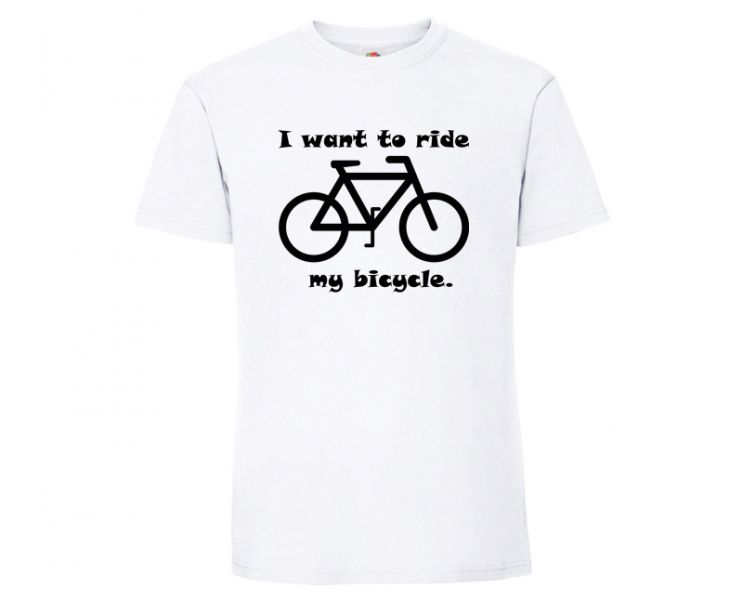 Koszulka rowerowa I want to ride my bicycle. I wiadomo o co chodzi. Koszulka rowerowa z przesłaniem Chcę jeździć na rowerze. Po prostu jazda sprawia sporą frajdę. Gdy to jest Twoje hobby, to nie ma dystansu, który był by za długi. Pogoda również nie jest żadną przeszkodą. Może śnieg czy deszcz nie są ulubioną aurą na przejażdżkę, ale co to jest dla twardzieli. Zimą trenuje się inaczej i to nie koniecznie na dworze, ale na trenażerze.