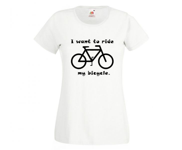 Koszulka rowerowa damska I want to ride my bicycle. Dziewczyny, które lubią podreślić swoją talię powinny postawić na damski model koszulki. Te natomiast, które wolą swobodne kroje powinny wybrać klasyczny t-shirt (męski) z tym samym nadrukiem.