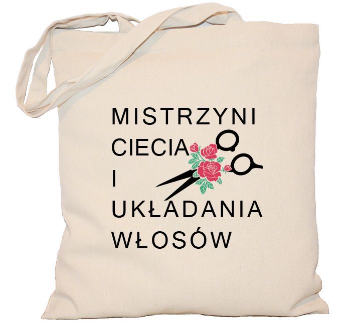 Torba dla fryzjerki z napisem Mistrzyni cięcia i układania włosów.