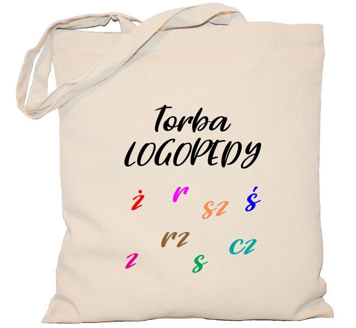 Torba Logopedy z literkami oddaje po części jakie głoski bywają problematyczne i z jakimi muszą radzić sobie logopedzi. To bardzo pomocny zawód w życiu wielu ludzi. Najczęściej problemy z wymową mają dzieci i je trzeba wspomóc w ćwiczeniach buzi i języka. Ale i wśród dorosłych często słyszy się dziwne zaciąganie, specyficzny sposób mówienia czy charakterystyczne seplenienie.