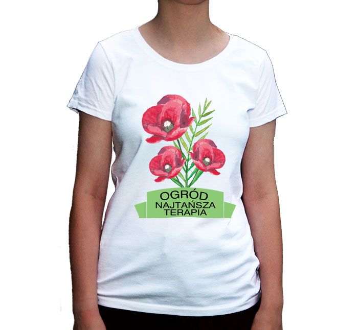 Koszulka Ogrodnicza Ogród najtańsza terapia jest przeznaczona dla zapalonej fanki ogrodu. Koszulka "Ogród - Najtansza Terapia" ma nadruk przedstawiający trzy czerwone maki na tle zielonej gałązki. Jest wykonana z wygodnego materiału, idealna do pracy w ogrodzie lub na co dzień. Jest ciekawym dodatkiem dla miłośników ogrodnictwa, przekazującym pozytywną i humorystyczną wiadomość o terapeutycznym oddziaływaniu ogrodnictwa na zdrowie i dobre samopoczucie.