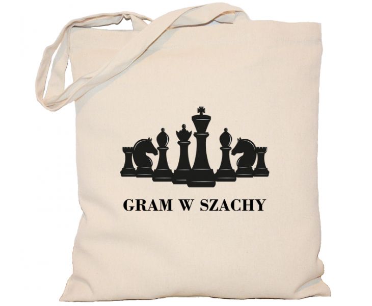 Torba płócienna Gram w szachy przydaje się przy codziennych czynnościach. Taką torbę możesz zabrać ze sobą wszędzie. Spokojnie do niej zmieścisz zegar, pudełko z szachami oraz drobne przekąski i napoje.