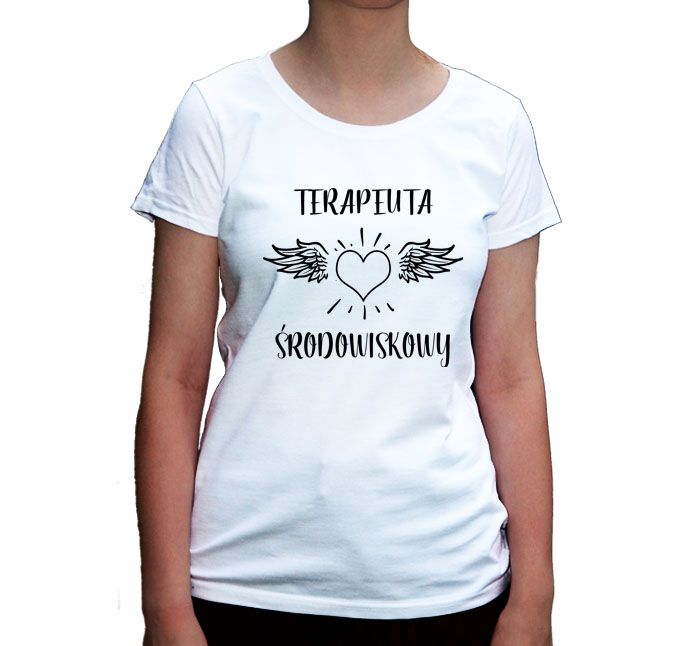Koszulka Terapeuta środowiskowy z sercem i skrzydłami anioła.