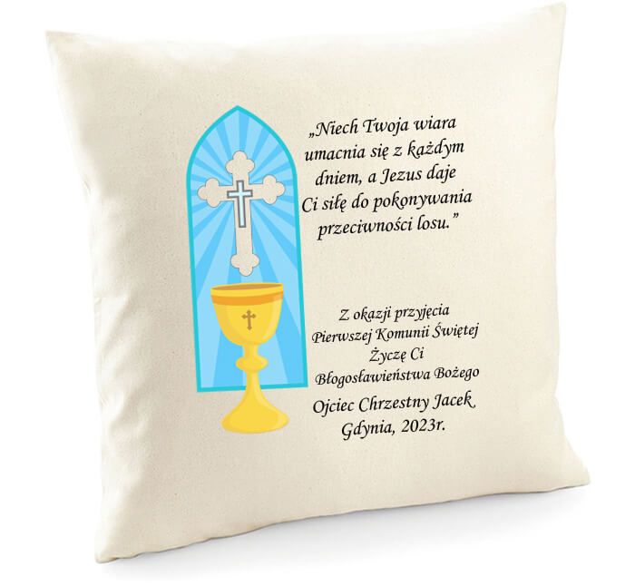 Poduszka na pamiątkę Komunii świętej z życzeniami