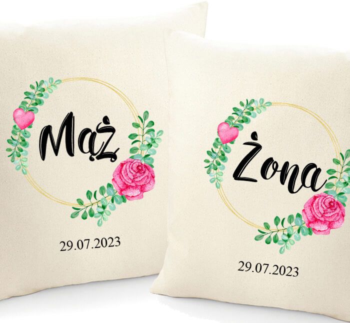 Poduszki na ślub z napisem Mąż Żona dla pary młodej