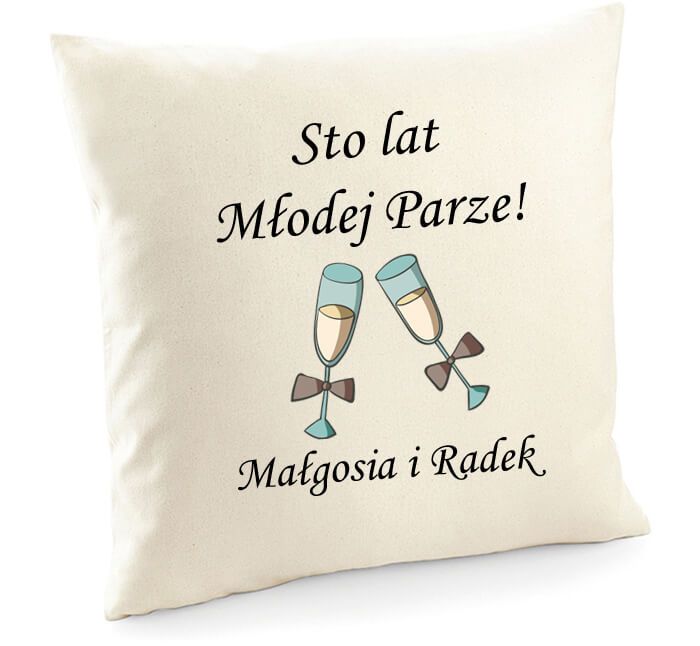 Poduszka na ślub Sto lat Młodej Parze. Poduszka spersonalizowana imionami pary małżonków.
