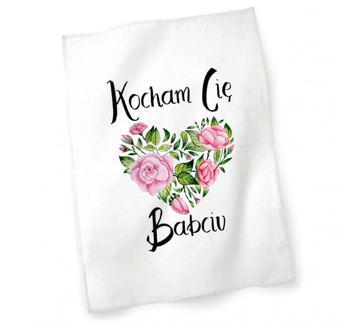 Ścierka kuchenna z nadrukiem na dzień babci. Napis głosi "Kocham Cię Babciu" i to jest prawdziwe wyznanie.