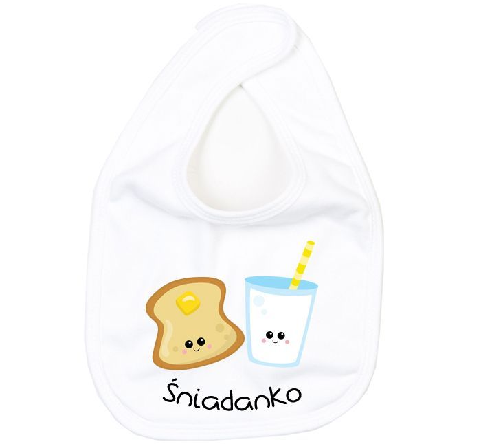 Śliniaczek Mleko i tost z napisem śniadanko.