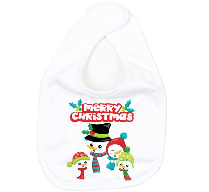 Śliniak Bałwankowa rodzina. Świąteczne bałwanki stoją razem.