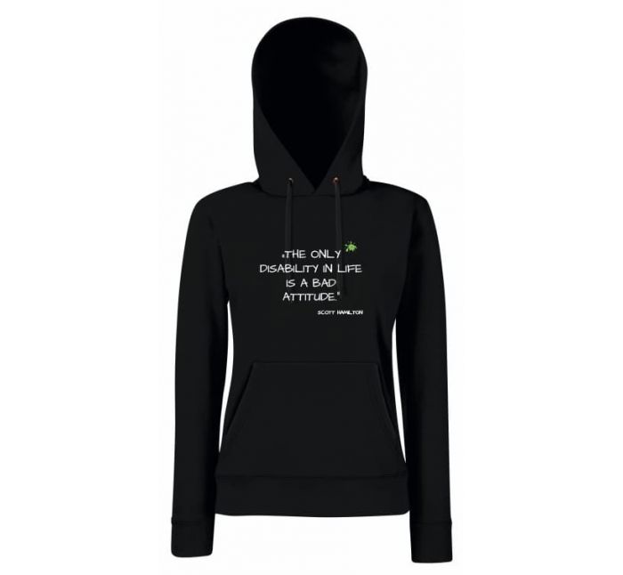 Bluza damska z kapturem The only disability in life is a bad attitude wykonana na ciepłej bluzie od Fruit of the loom model 62-038-0