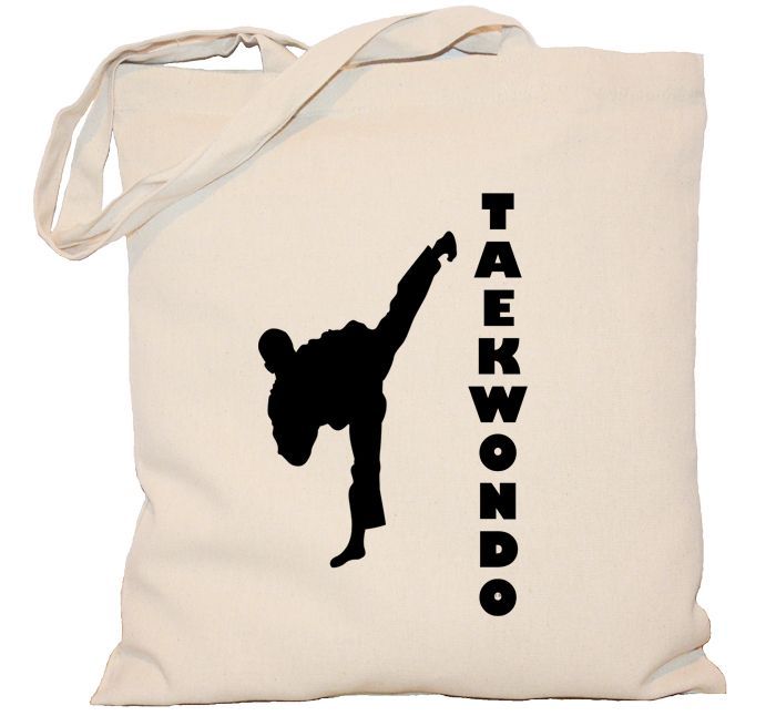 Torba Taekwondo z sylwetką człowieka prezentującego wysokie kopnięcie.